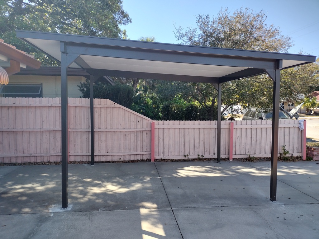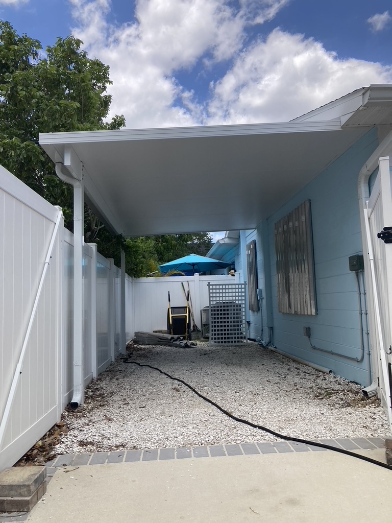 Designed for both residential and commercial use, these canopies combine structural strength with a clean, finished look that enhances any property in Tampa, Clearwater, or St. Petersburg.